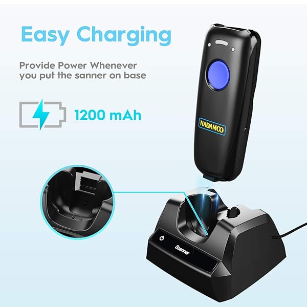 - NADAMOO Wireless Barcode Scanner Compatible with Bluetooth, with Charging Dock, Portable USB 1D Bar Code Scanner for Inventory, 2.4G Wireless & Wired Barcode Reader for Tablet iPhone iPad Android iOS offers reliable performance and quality