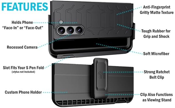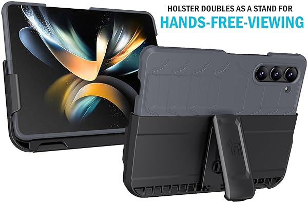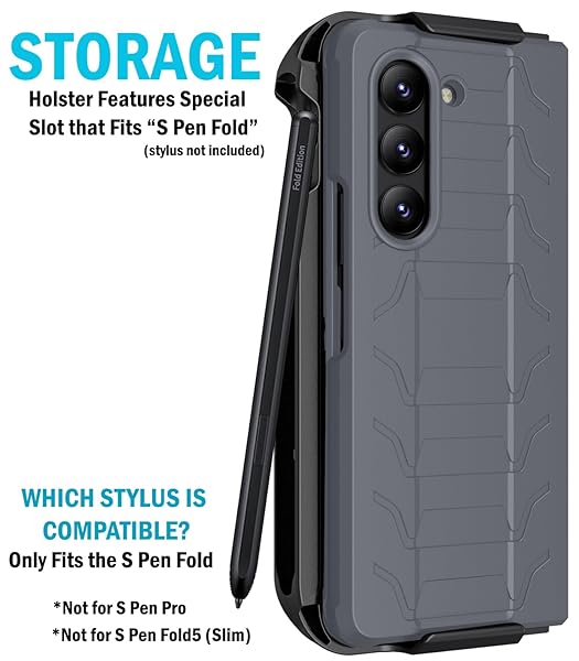 - Case with Clip and S Pen Slot for Galaxy Z Fold 5 5G, Nakedcellphone Tactical Cover and Custom Belt Hip Holster Holder View Stand Combo for Samsung Z Fold5 Phone (SM-F946U, 2023) - Storm Gray with reliable performance and quality- The ULTIMATE Accessory Combination for Your Samsung Galaxy Z Fold 5: Protective Case + Multifunction Holster Belt Clip- RUGGED HYBRID CASE: The Special Ops Case is Like [TACTICAL BODY ARMOR] for your Samsung Galaxy Z Fold 5 Phone. CoMolding Techno