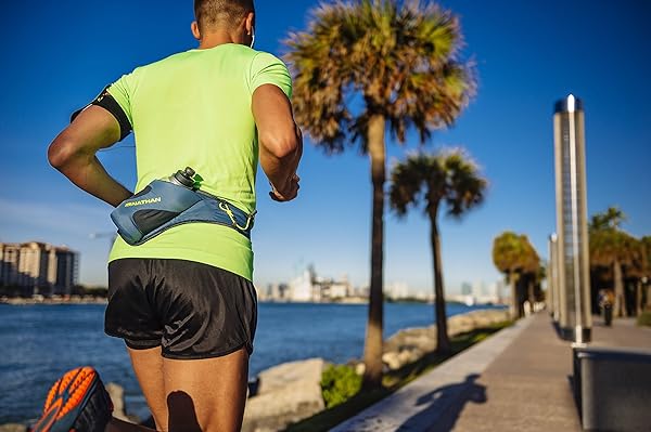 - Nathan Peak Running Hydration Waist Pack Belt w/Speed Draw Flask Water Bottle, 18oz/535 ml Push/Pull Race Cap, Expandable Zippered Stretch Pocket offers reliable performance and quality- MINIMAL DESIGN, MAXIMUM FUNCTION: Running belt is crafted with extended side panels hug the body comfortably for a perfect fit. This running belt lets runners bring their essentials without getting in the way of your active lifestyle
