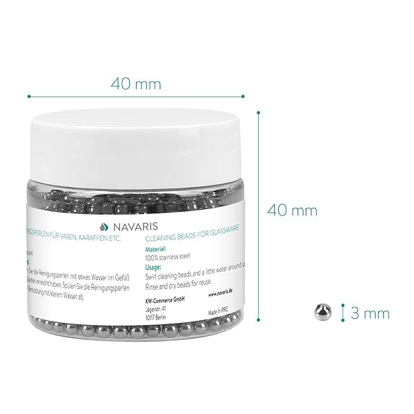 - Navaris 1000 Pcs Decanter Cleaning Beads - Stainless Steel Reusable Cleaning Balls for Wine Bottles, Glass Decanters, Carafes, Narrow Spouted Vases offers reliable performance and quality- CRYSTAL CLEAR: Having trouble getting rid of those stains and residue at the bottom of your glass container? Brushing is not enough? Then use the Navaris Decanter Cleaning Beads to do just that!