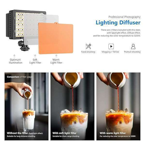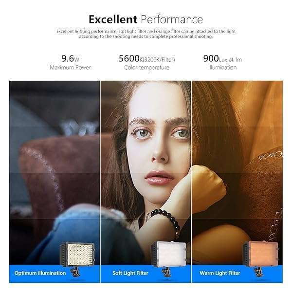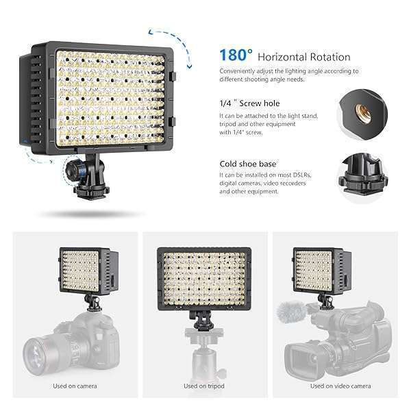 - NEEWER 160 LED CN-160 Dimmable Ultra High Power Panel Digital Camera / Camcorder Video Light, LED Light compatible with Canon, Nikon, Pentax, Panasonic,SONY, Samsung and Olympus Digital SLR Cameras...- 60-LED lights for optimum illumination and diffuser.- There are 2 filters included with this item, with Spotlight effect, Diffuse effect, and for reducing the color temperature to 3200K- The light intensity can be changed to offer professional effects.