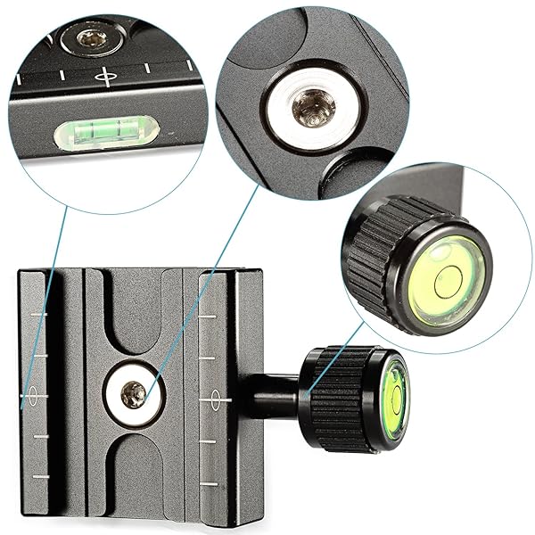 - Neewer Aluminium 50mm Quick Release Plate QR Clamp 3/8-inch with 1/4-inch Adapter and Built-in Bubble Level provides reliable performance and quality- 5mm/1.97" in length (accepts Arca type plates of any length securely)- Adapter jaws will accept plates from 38 to 42mm wide- Allowing for newer style plates with security screws- Include built in Bubble level