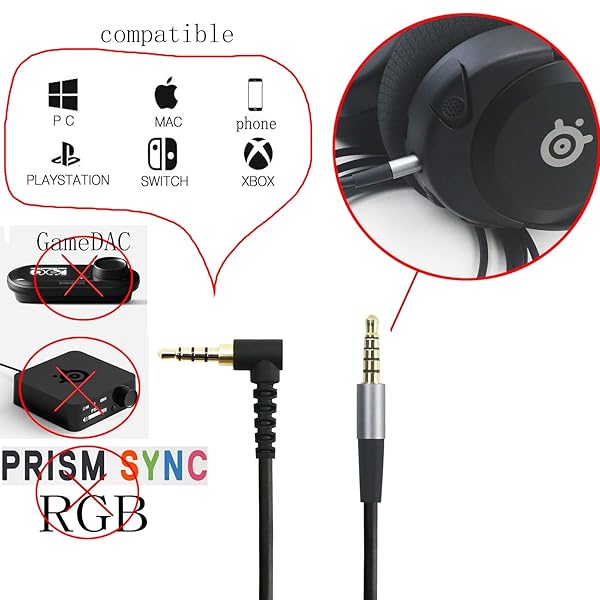 - NewFantasia Replacement Audio Cable 3.5mm 5 Pole Male Cord Compatible with SteelSeries Arctis Nova 1, 1X, Pro, 7, 7X, 1P Gaming Headset 2meters 6.6feet with reliable performance and quality- This cable is made with the Superb Premium Wire. Independent Shield among L, R and MIC. Soft enough and comfortable- Function: you can use our these cables to connect the PC,gaming, for PS4, for Xbox One, for Mac, for consoles, mobiles phone and tablets to Compatible with SteelSeries Ar