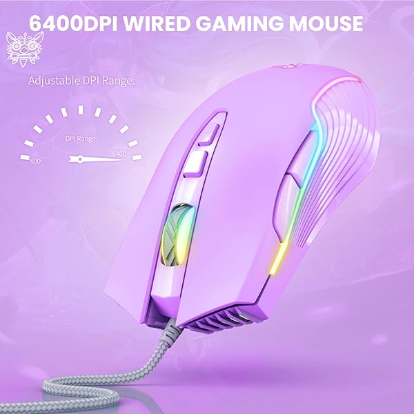 - NEWSTYP Cute RGB 6400 DPI Wired Gaming Mouse Breathing LED Optical USB 7 Buttons Gamer Computer Pink Mice for Laptop PC Desktop (Purple) offers reliable performance and quality- ERGONOMIC & SKIN-FRIENDLY DESIGN: With symmetrical & streamlined design, our anti-fingerprint and sweat-resistant gaming mouse provides a comfortable claw-grip, and long-term use without fatigue. Top choice for computer game players to keep grip firmly during game