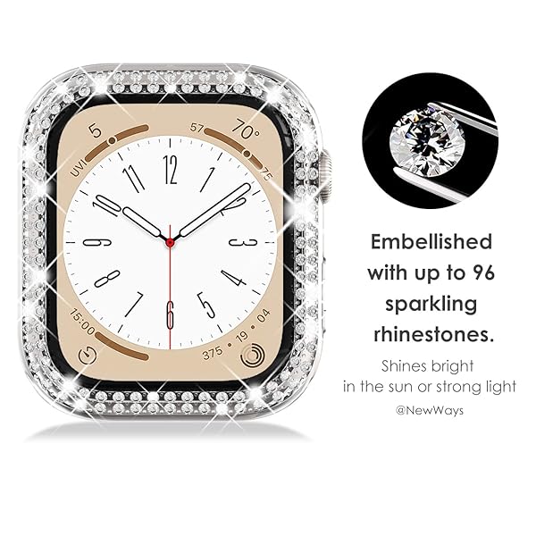 - NewWays 2-Pack Bling Compatible for Apple Watch Cases 44mm SE Series 6 5 4, Protective Bumper for iWatch SE Series 4/5/6 (44mm, Starlight/Clear) with reliable performance and quality- Dazzle in this case- Embellished with 96 premium quality rhinestones, it shines bright especially in the sun or strong light. Blings never comes off- With advanced adhesive process, the rhinestones are permanently glued on the case and will never come off.- Made from premium polycarbonate, it