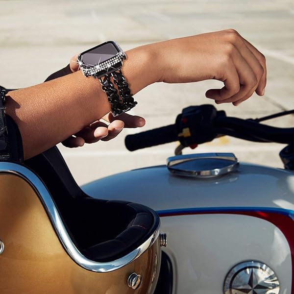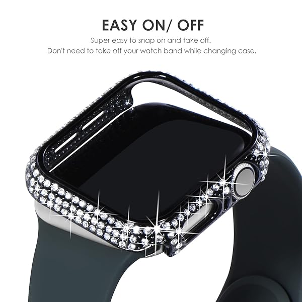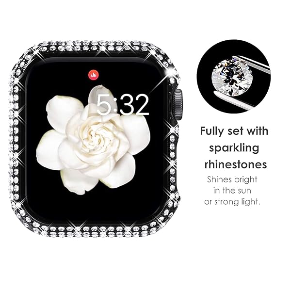 * NewWays 2-Pack Full Diamonds Bling Cases for Apple Watch Case 44mm Women, Fully Paved Diamonds Protective Bumper for iWatch SE Series 6 5 4 44mm, Black/Clear: luxurious design: designed by a french artist * It combines elegance with artistry * Turning your Apple Watch into a dazzling piece of jewelry * Its intricate and sophisticated style add a touch of luxury to any outfit * Effortlessly elevating your look
