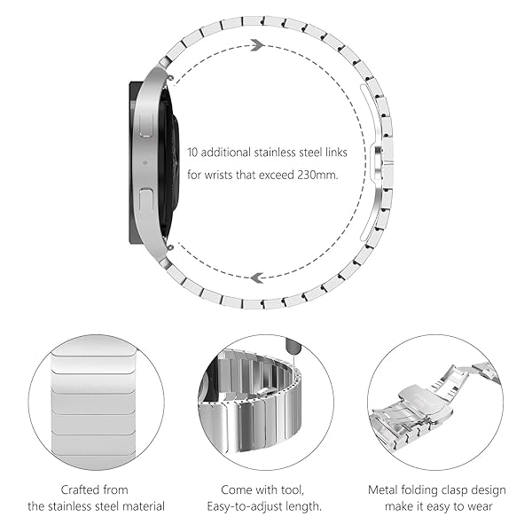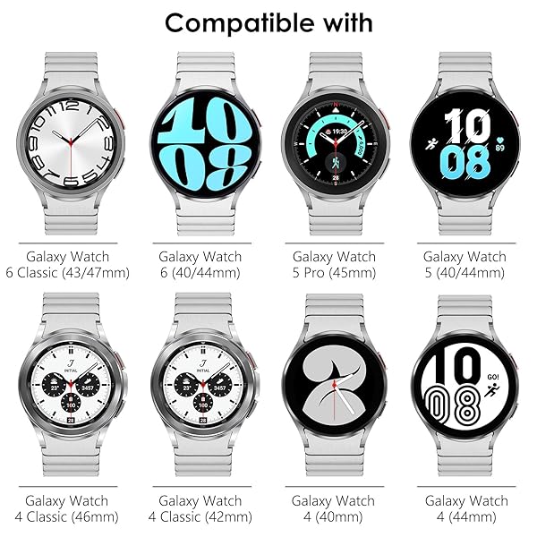 - NewWays Compatible for Samsung Galaxy Watch 7 6 5 Band Gapless 5 Pro 45 40 44mm, Galaxy Watch 4 Band Classic 40 44 42 46mm, No Gap Band, Solid Stainless Steel Metal Link Bracelet for Men, Silver with reliable performance and quality- Seamless Integration & Professional Style No-gap design ensures your Galaxy Watch looks more integrated, offering a sleek, professional, and expensive appearance ideal for formal occasions. Compatible with Galaxy Watch 7/6 (40mm/44mm), Galaxy Watch 6