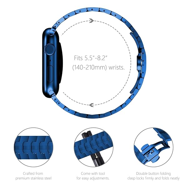 - NewWays Metal Band Compatible with Apple Watch Band Ultra3 2 1 49mm Series11 10 46mm Series 9 8 7 45mm 44mm SE 6 5 4 3 42mm iWatch Stainless Steel Link Bands, Blue with reliable performance and quality- Premium 316L Stainless SteelCrafted from high-quality 316L stainless steel, this band offers exceptional durability and resistance to rust and corrosion, ensuring it maintains its sleek, polished look. Ideal for both casual and formal occasions, it combines strength and elegance fo