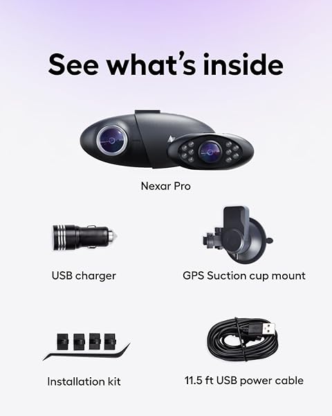 Nexar Pro Dual Dash Cam - 1 Year Nexar App Subscription Included - Unlimited Cloud Storage, Drive Recordings, Parking Mode, Night Vision, All Inside The Nexar App - WiFi HD Front Dash Cam (64 GB SD)