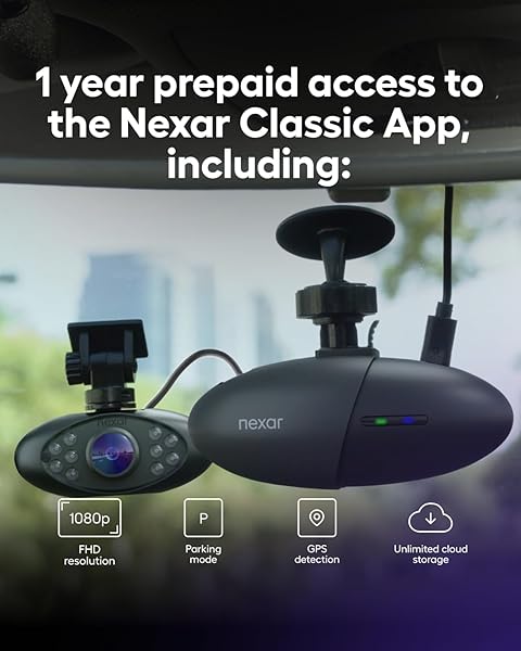 Nexar Pro Dual Dash Cam: 1 Year Subscription, Unlimited Cloud Storage, Night Vision & Parking Mode - HD WiFi Front Cam (64GB SD)