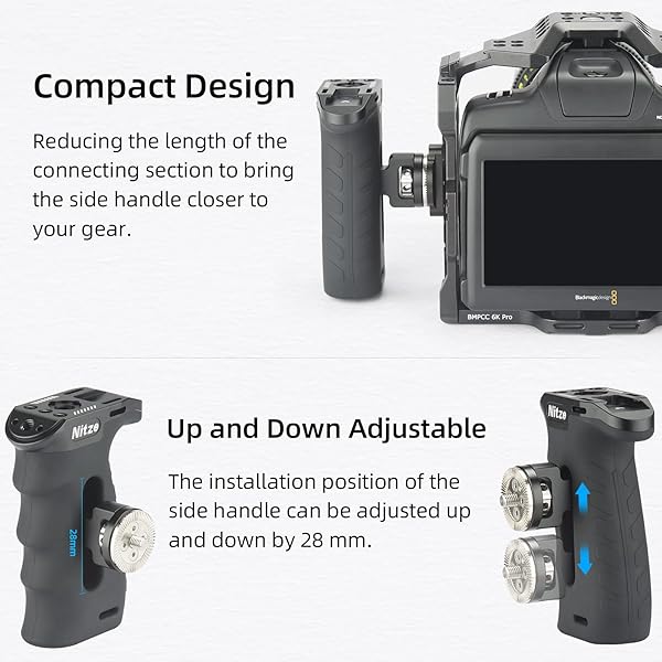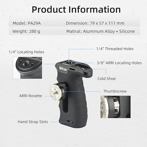 - Nitze Ergonomic Rosette Side Handle with Rosette for ARRI, Up/Down and Left/Right Adjustable, Rubberized Aluminum Camera Side Handle for Camera/Monitor Cages - PA29A provides reliable performance a...- Rubberized Aluminum Side Handle: Nitze PA29A side handle with ARRI rosette is made of aluminum alloy and covered with rubber for more comfortable grip and durability; It can be mounted to camera or...