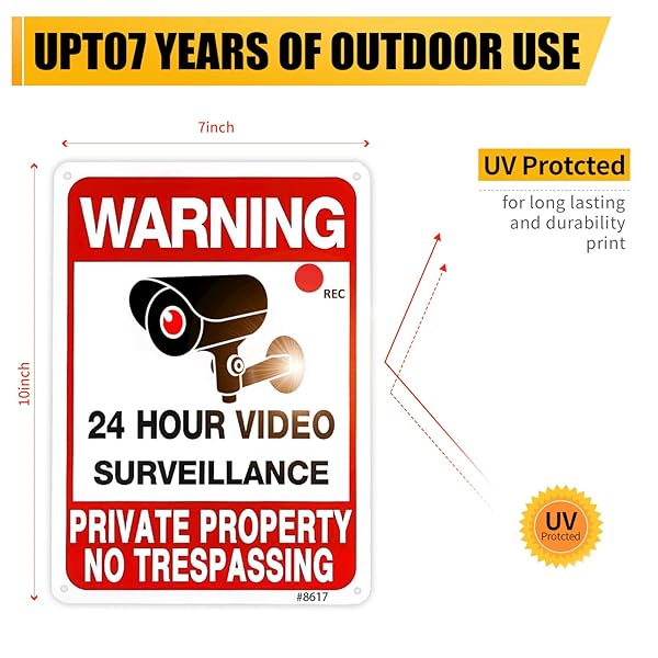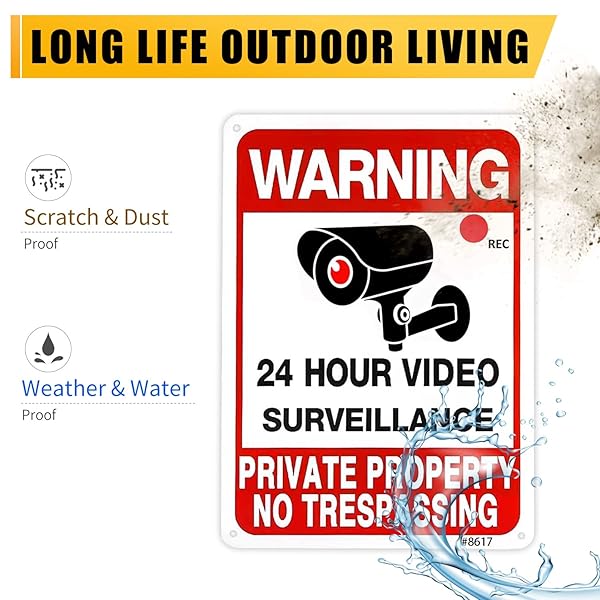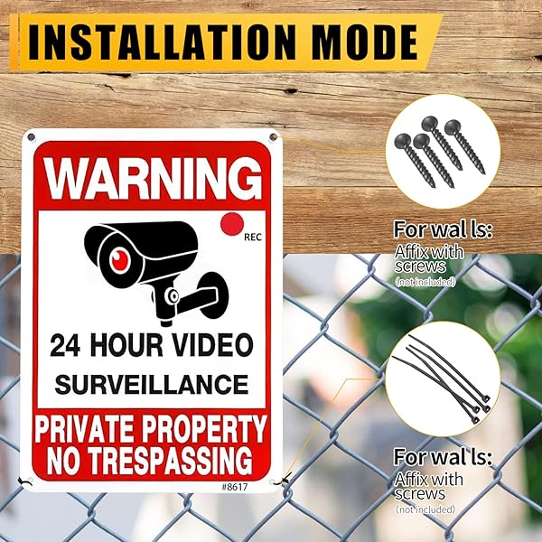 - No Trespassing Signs Private Property 24 Hour Video Surveillance Signs Aluminum 7*10 inchs Warning Sign for Property Security Camera Sign for Yard and Home (4-Pack) with reliable performance and quality- No Trespassing Signs Private Property: Warn potential intruders with bold, easy-to-read private property no trespassing signs that double as video surveillance signs outdoor.- Versatile Mounting Options: With four pre-drilled holes, these security signs for yard can be easi