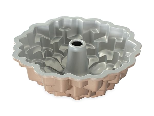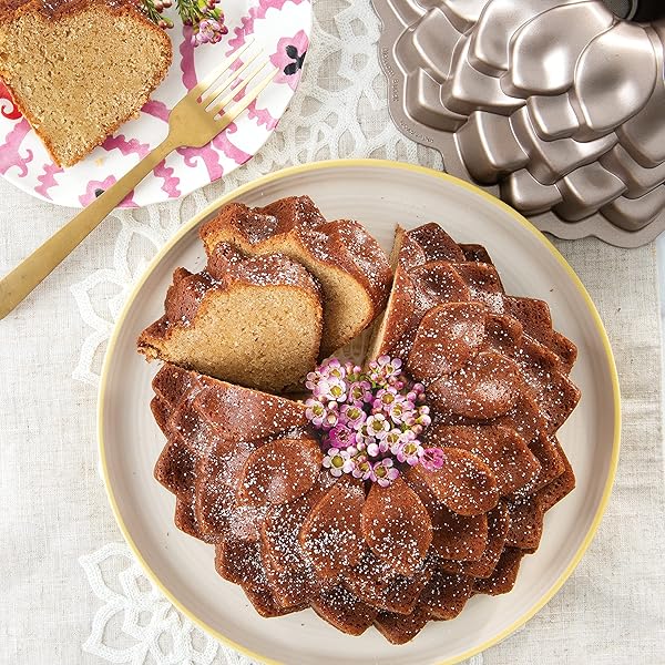 - Nordic Ware Blossom Bundt Pan ,Toffee offers reliable performance and quality- Genuine Bundt pans are made of durable cast aluminum to achieve the most crisp, intricate cake detail possible- Cast aluminums superior heat conductivity ensures controlled, even browning of cakes and treats- Premium silicone nonstick is made without PFAS and PTFE for healthy baking and ensures effortless release and cleanup