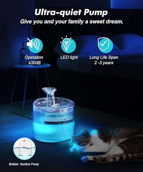 * NPET WF100 Cat Foutain, 54oz/1.6L Automatic Pet Water Fountain Dog Water Dispenser with 2 Flow Modes, Bottom Suction LED Light Quiet Pump for for Cats & Small Dogs: two flow modes: the npet pet water fountain has 2 modes: leaf-shaped mode and the gentle fountain mode * Which could meet different needs of pets * Staying hydrated is the key to preventing kidney and urinary tract diseases * The lovely leaf-shaped attachment attracts your cats to drink more water to keep healthy * Large Capacity: