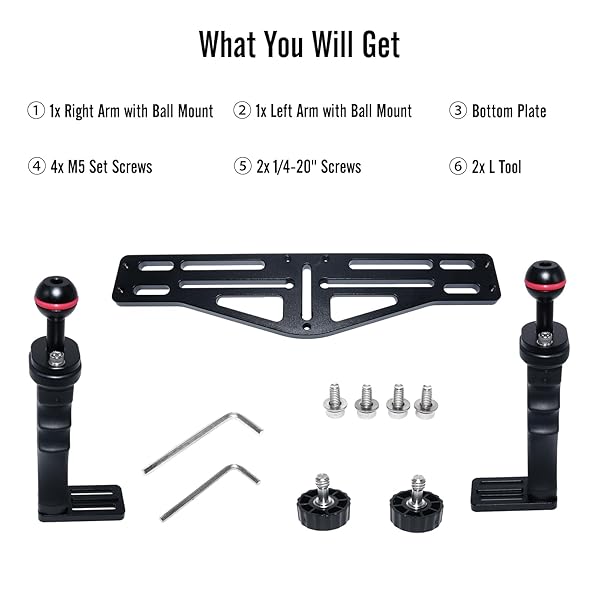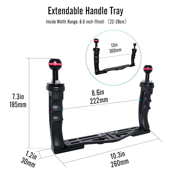 NS10 Underwater Camera Tray with Extendable Handle Grips for GoPro & RX100 - Durable Aluminum & Rubber Design