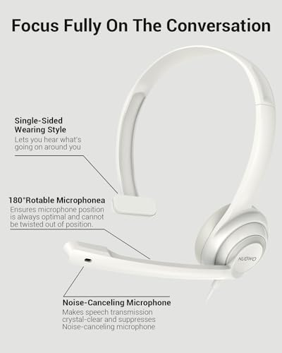 - HW02 USB Headset with Microphone Noise Cancelling & in-line Control, Super Light, Ultra Comfort On-Ear Wired Office Call Center Headset for Boom Skype Webinars (White) with reliable performance and quality- NUBWO PC Headset with Noise Cancelling Mic, 3.5mm/USB Computer Headset with Detachable surround sound Vol./Mute USB Control, On-Ear Wire VoIP Headsets for casual gaming, e-learning and music- The adjustable boom mic minimizes background noise for clear communication on p