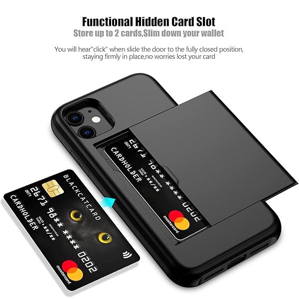 - Nvollnoe for iPhone 11 Case with Card Holder Heavy Duty Protective Dual Layer Shockproof Hidden Card Slot Slim Wallet Cover for iPhone 11 for Men&Women(Black): reliable performance and quality- This iPhone 11 wallet case perfectly fits the iPhone- Dual-layered Extreme Protection: Outer cover hard PC- Hidden Card Slot Design: Slim down your wallet, store- Sleek exterior is easy to slide in and out of pockets.