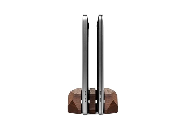 Oakywood Dual Laptop Dock: Stylish Vertical Stand for MacBook & iPad - Walnut Desk Organizer for 2 Devices