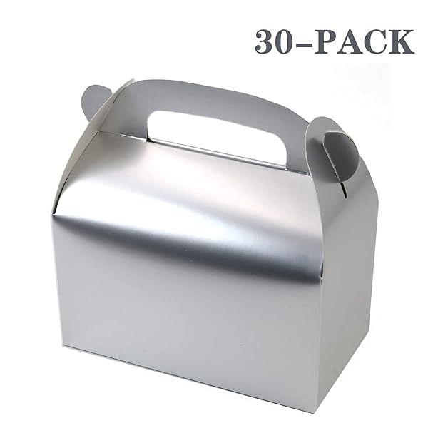 - Oletx 30-Pack Silver Party Favor Treat Boxes, Goodie Boxes, Gable Paper Gift Boxes with Handles. Perfect for Wedding, Birthday, Graduation, Babyshower. offers reliable performance and quality- Premium Quality: The Treat Boxes are made with 350g recycled and eco-friendly cardboard paper, which is sturdy and non-toxic. Perfect for kids party favor packaging