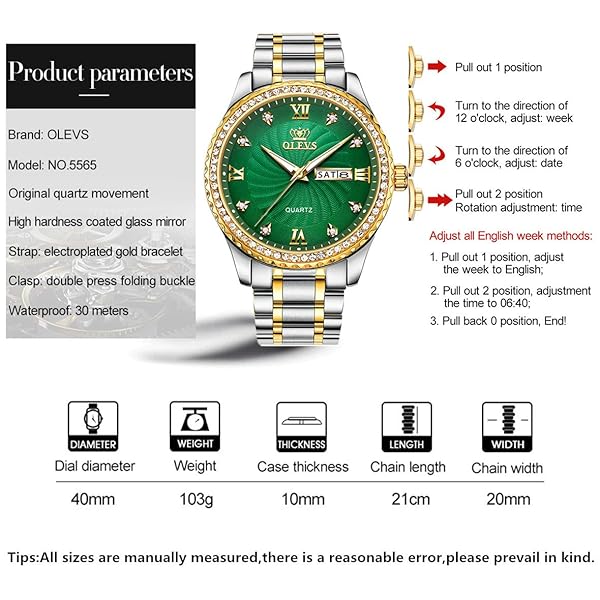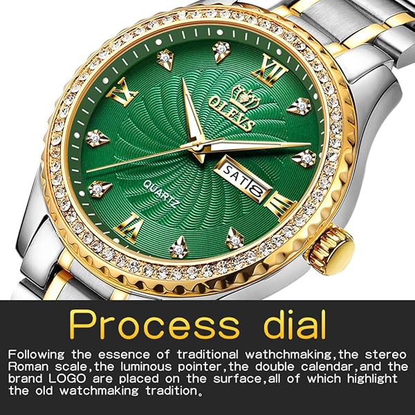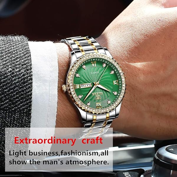 - OLEVS Men's Green Dial CZ Watches for Men Waterproof Best Fashion Classic Casual CZ Rhinestone Crystal Men's Waterproof Watches Analog Quartz Watch Stainless Steel Classic Rhinestone Wrist Watch offers reliable performance and quality