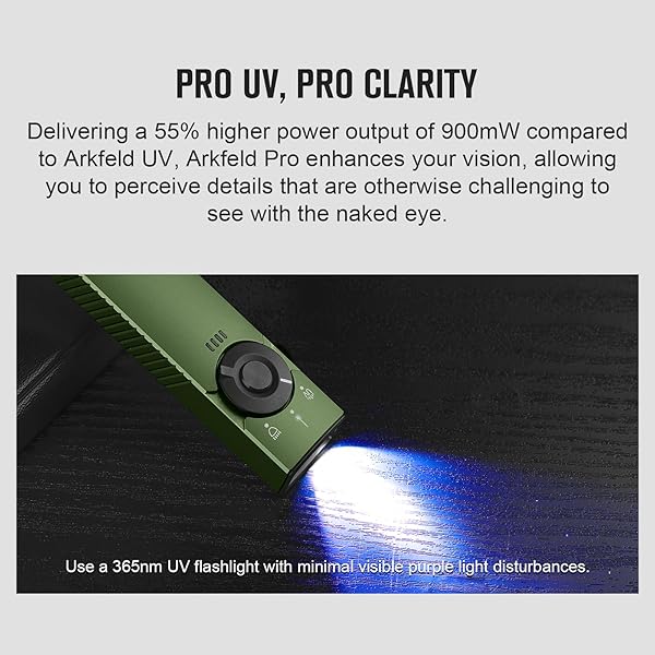 - OLIGHT Arkfeld Pro Rechargeable EDC Flat Flashlight with Green Beam, UV and White LED Combo, 1300 Lumens Portable Pocket Lights, Triple Sources for Outdoors Emergency Working (OD-Green CW) with reliable performance and quality- The output of the green beam is 5mW, the class is 3R- [Three-in-One Functionality] Provides an impressive maximum brightness of 1300 lumens for excellent illumination. Arkfeld pro combines white light, UV, and green beam in a single flashlight, offer
