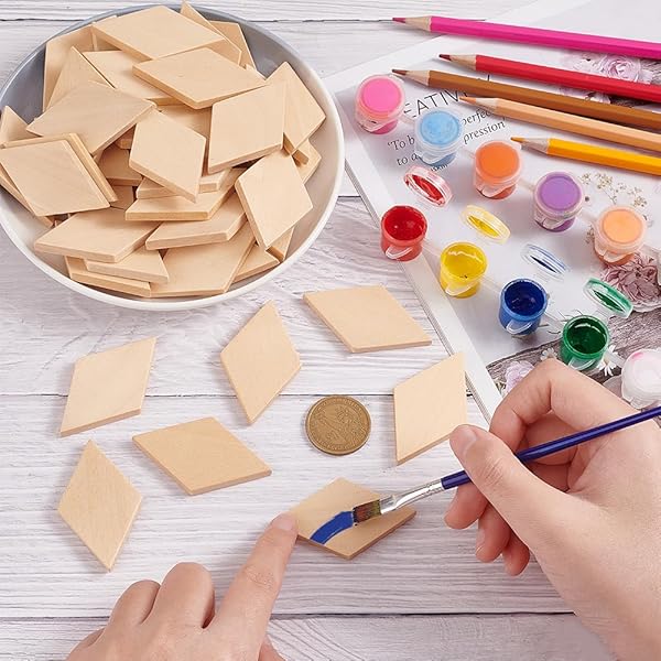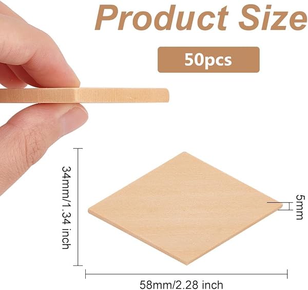 - OLYCRAFT 50PCS Wood Pieces - Unfinished Natural Wood Rhombus Cutout Shape Blank Slices for DIY Crafts & Holiday Decoration - 2.3x1.3x0.2 Inch offers reliable performance and quality- Package Include--50pcs unfinished wood rhombus for painting and crafting; Size about 58mm/2.28 long, 34mm/1.34 wide, 5mm/0.2 thick, enough for the daily use