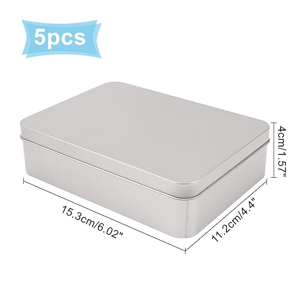- OLYCRAFT 5PCS Rectangle Metal Empty Tins 6x4x1.6 Inch Sliver Airtight Metal Storage Tin Home Organizer with Lids for Small Items Storage Christmas Decorations offers reliable performance and quality- Warm Notice--Please note that the current inventory is mixed of old and new packaging, shipped randomly. The new packaging uses cardboard boxes to avoid damage to the product during shipping