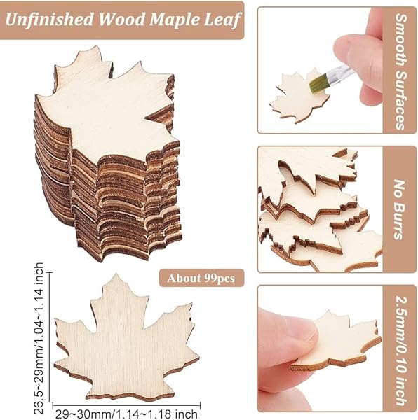 - OLYCRAFT 99pcs Wooden Maple Leaf Cutouts Unfinished Blank Wood Slices Maple Leaves Wood Pieces Wooden Cutout Ornaments for DIY Crafting Gift Tags Autumn Party Decorations with reliable performance and quality- Sufficient Quantity--You will get about 99pcs unfinished wooden maple leaf cutouts, the size is about 2.65~2.9x2.9~3x0.25cm. The abundant quantity can meet your various DIY needs.- Premium Quality--The unfinished wood slices is made of natural wood, laser cut without