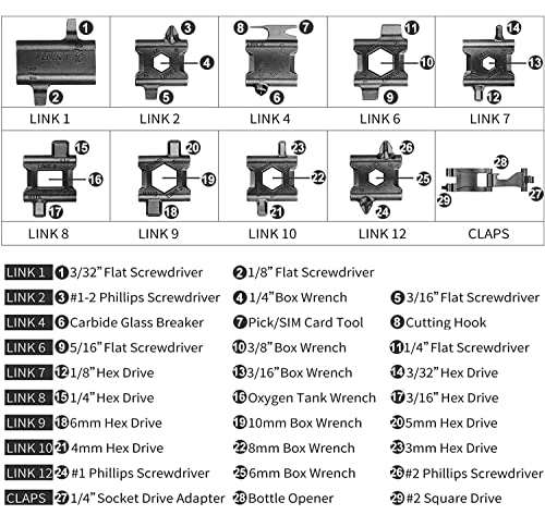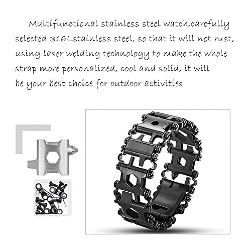* ONELANKS Stainless Tool Bracelet for Men Compatible for LEATHERMAN TREAD and Watch Band 29 in 1 Survival Hiking Camping Travel Friendly Multitools Wearable Bracelet Black: multitool29 in 1 outdoor emergency bracelet * A variety of box wrenches * Hex wrench,hex drives * Flat and Phillips screwdrivers * Oxygen tank wrench