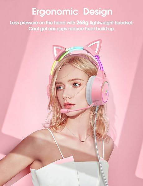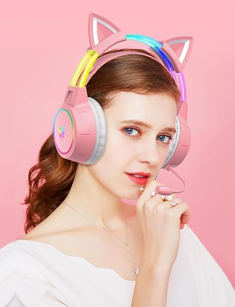 - ONITOON Lightweight Gaming Headset with Detachable Cat Ears, RGB Lighting, Wired Over Ear Headphones with Mic for PC, PS4, PS5, Switch, Stereo Surround Sound, Self-Adjusting Headband with reliable performance and quality- Cute Cat Ear HeadphoneThe cat ears can be detached and placed in any position for flexible use. Pink gaming headset with RGB lighting, perfect for girls, women, female gamer- Gradient RGB LightingFeaturing vibrant fascinating RGB lights on the head-beam, l