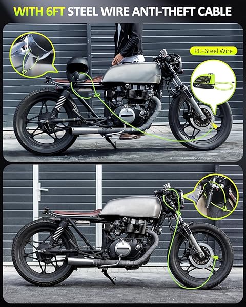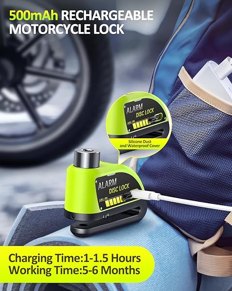 - ONVIAN Rechargeable Motorcycle Lock with 6FT Steel Wire Anti-Theft Cable, for 7mm Pin Ebike Electric Scooter Motorcycle Helmet Wheel Disc Brake Lock(Lemon Yellow) with reliable performance and quality- RECHARGEABLE MOTORCYCLE DISC BRAKE LOCK & IP67 WATERPROOF: Use the type-C charging cable to charge the 500mAh battery built into the disc brake lock for 1-1.5 hours to reach full charge. Once fully charged, it can operate for approximately 5-6 months, greatly reducing the inconvenie