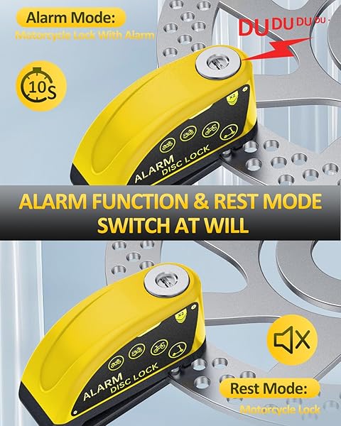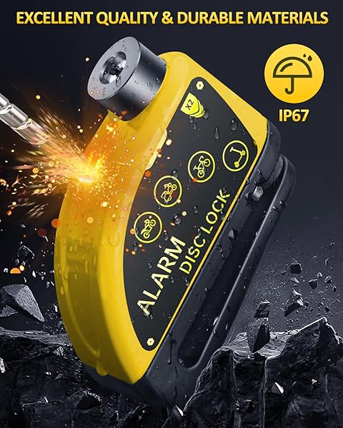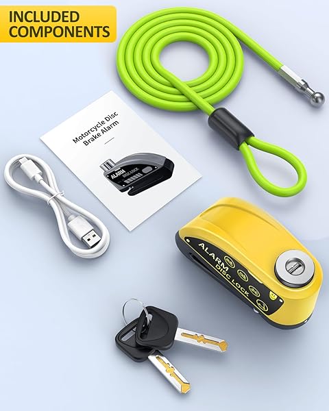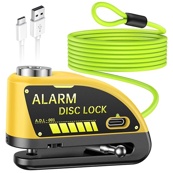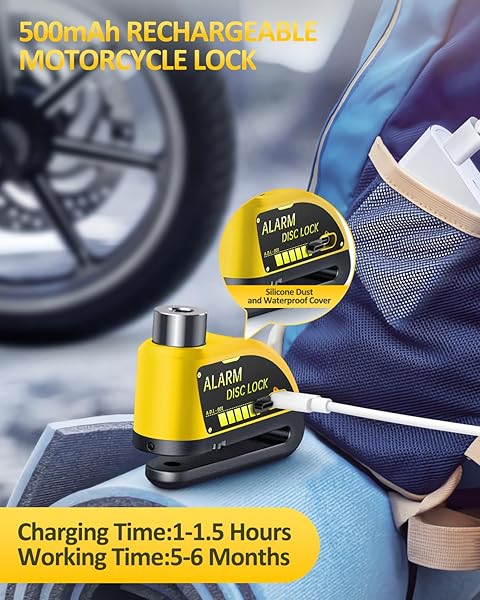 - ONVIAN Rechargeable Motorcycle Lock with 120db Alarm and 6FT Steel Reminder Cable, for 7mm Pin Motorcycles Bicycles Ebike Scooter Moped(Yellow) with reliable performance and quality- RECHARGEABLE MOTORCYCLE DISC BRAKE LOCK & IP67 WATERPROOF: Use the type-C charging cable to charge the 500mAh battery built into the disc brake lock for 1-1.5 hours to reach full charge. Once fully charged, it can operate for approximately 5-6 months, greatly reducing the inconvenience of changing but