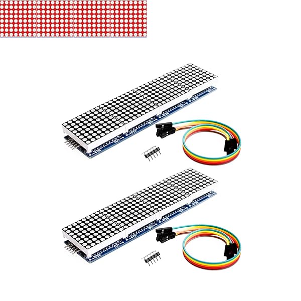 - Onyehn 2pcs MAX7219 Dot Matrix Module(Red Light) 4 in 1 Display for Arduino Microcontroller with 5Pin Line(Christmas Decoration DIY Letters Electronic Display) offers reliable performance and quality- Dimension of Module: 12.8X3.3X1.3cm(5.04X1.3X0.51in)- Operating voltage: 5V- A single module can drive a 8x 8 dot matrix common cathode- 64 fixed screw holes with 3mm in its diameter