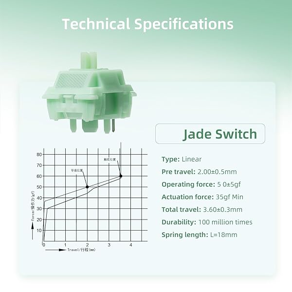 - Chilkey Jade Green Keyboard Switches, 5 Pin PCB Mount Pre-lubed Switches Linear with POM Housing, UPE/Stainless Steel Stem for Mechanical Gaming Keyboard (35pcs) with reliable performance and quality- Jade Keyboard Switches: This jade swithces is made of POM top and bottom housing + UPE/Stainless Steel stem, and internal spring can reduce noisy rebound sound, ensuring the sound is pure and stable when bottoming out.- Details & Specs: Type: Liner Switches, Actuation Force: 5