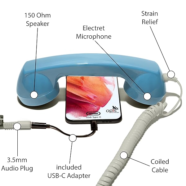 - Opis 60s Micro : Retro Phone Handset/USB Handset/Handset for Cell Phone/Phone Receiver for Cell Phone/Retro Telephone Handset/Retro Phone for Cell Phone/Retro Mobile Phone (Azure): reliable performance and quality- For iPhone 14 and Earlier: Get the Bundle to make this- AUX & USB-C: This telephone handset for cell phone- Mobile Phone Retro Handset : Using the cell phone- Great Audio : Just like the audio from corded phone