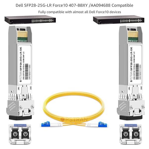 - OPSTRAN 25GBASE-LR SFP28 Optical Transceiver Module Compatible with Dell SFP28-25G-LR Dell Force10 407-BBXY AA094688 25G SFP28 1310nm 10km DDM Duplex LC SMF offers reliable performance and quality- 25GBASE-LR SFP28 Optical Transceiver Module 1310nm 10km DDM Duplex LC SMF. Built-in high performance Chip, Max. Power Consumption 1.2W Allowing for Prolonged Service Life, Commercial Temperature Range 0 to 70C (32 to 158F)