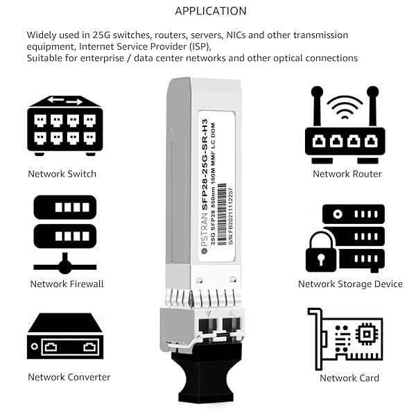 - OPSTRAN 25GBASE-SR SFP28 Optical Transceiver Module Compatible with HPE H3C JL293A SFP-25G-SR-MM850 25G SFP28 850nm 100m DOM Duplex LC MMF offers reliable performance and quality- 25GBASE-SR SFP28 Optical Transceiver Module 850nm 100m DDM Duplex LC MMF. Built-in high performance Chip, Max. Power Consumption 1W Allowing for Prolonged Service Life, Commercial Temperature Range 0 to 70C (32 to 168F)