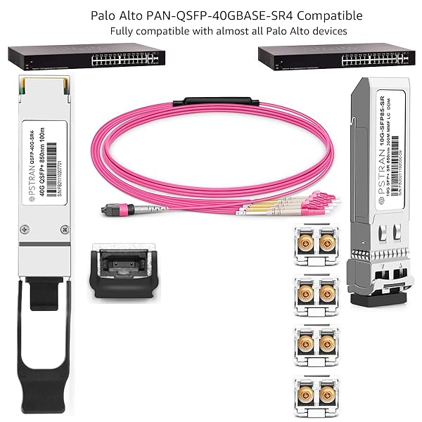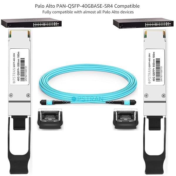 - OPSTRAN 40GBASE-SR4 QSFP+ Optical Transceiver Module Compatible with Palo Alto PAN-QSFP-40GBASE-SR4 850nm 100m DDM MPO-12/UPC MMF offers reliable performance and quality- 40GBASE-SR4 QSFP+ Optical Transceiver Module, Built-in high performance Chip, Max. Power Consumption 1.2W enable Prolonged Service Life, Commercial Temperature Range 0 to 70C (32 to 158F)