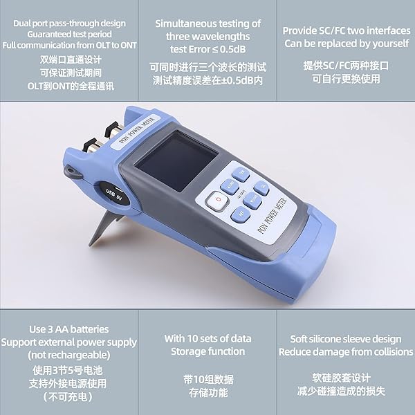 - Optical Fiber Cable PON Power Meter Tester Tool 1310 1490 1550nm FTTX ONT OLT Handheld PON OPM Network Detection Online Fiber Tester with FCAPC SCAPC Adapter with reliable performance and quality- Support FCAPC SCAPC interface adapter. Have the USB- Pon power meter test wavelength:1310/1490/1550nm,Three wavelengths can be tested at the same time.On line test ensure the communication from OLT to ONT.- Support Data storage,Support automatic shutdown,Support backlight s