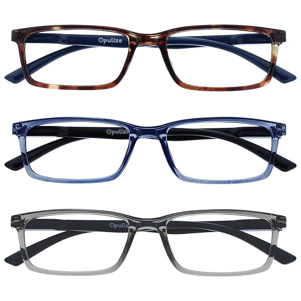 - OPULIZE SEE Reading Glasses with Blue Light Blocking for Women and Men, Narrow Frame, Spring Hinges, Computer Gaming Glasses, Brown,Blue,Grey +2.5 (Pack of 3) offers reliable performance and quality- Blue Light & UV400 Protection for Everyday Eye Health - Designed for screen-heavy days, SEE filters harmful blue light, UV rays and light glare to reduce eye strain, boost focus, and help prevent headaches. Ideal for working professionals, gamers or students