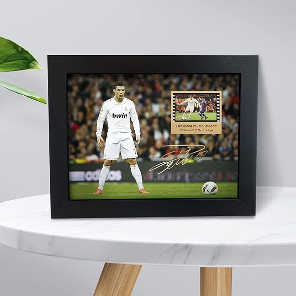 - ORIMAMI Signed Ronaldo Poster Photo Desktop Framed Picture 8x6 Inches,with 1x35mm Film Mini Cell Display,Gifts for CR7 Cristiano Ronaldo Fans offers reliable performance and quality- Unique Signed Photo: Our designs feature a digital reprint of the original autograph;They are printed,not hand signed originals- Ronaldo Memorabilia Film Display: There is 1x 35mm film showing one scenes of Barcelona vs Real Madrid El Clasico of 2011/12 La Liga