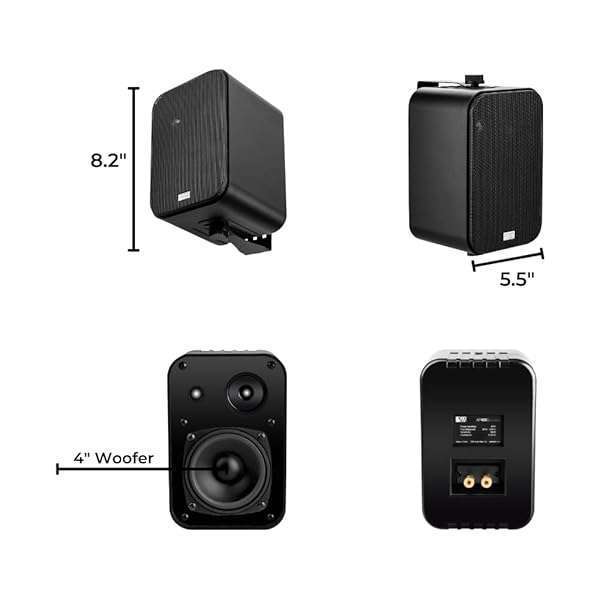 - OSD Audio 4" Outdoor Patio Speaker Pair 80W, IP54 Weather Resistant, Aluminum Grilles Black AP450 provides reliable performance and quality- MODERN: A sleek, modern, fancy look comes from the powder-coated rust-resistant grille, allowing this quality accessory to blend in with the decor.- OUTDOOR: The OSD Audio 3 Way Outdoor Patio Speaker Pair has the ability to handle temperature fluctuations from 20F to 200F during changing seasons.