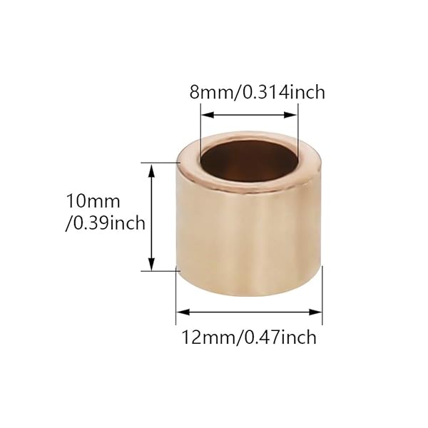 - Othmro 10Pcs Sleeve Bearing, 0.31" Bore x 0.47"OD x 0.39" Length Self-Lubricating Bushings for Sliding Parts of Machinery, Printing Presses, Textile Machines Reduce Shaft and Hole Wear offers reliable performance and quality- Bore:8mm; Outside Daimeter:12mm; Length:10mm- Lubrication-free. Suitable for high sliding velocity operation- Good frictional property. Maintenance-free- Featured with good load capacity and performance