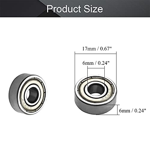 - Othmro 606ZZ Deep Groove Bearings 6x17x6mm Double Sealed Ball Bearing Carbon Steel 5pcs offers reliable performance and quality- Size-Bore(Inner Dia):6mm/0.23";Outer Diametre:17mm/0.66";Width(Thickness):6mm/0.23";Model:606ZZ;Material:Carbon Steel;Accuracy class:P0- High Quality-The bearings is made of bearing steel for durability and resistance to rust, corrosion and deformity under heavy loads