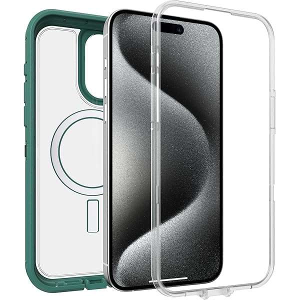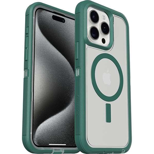 - OtterBox iPhone 15 Pro MAX (Only) Defender Series XT Clear Case - Velvet Evergreen (Clear), screenless, Rugged, Snaps to MagSafe, Lanyard Attachment provides reliable performance and quality- Perfect Fit for iPhone 15 Pro Max: Precision-engineered exclusively for the iPhone 15 Pro Max, this OtterBox case offers a flawless fit. It not only preserves your phone's sleek design but also ens...