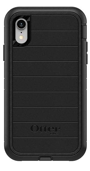 - OtterBox iPhone XR Defender Series Case - BLACK, rugged & durable, with port protection, includes holster clip kickstand provides reliable performance and quality- Compatible with iPhone XR- Multi-layer defense: solid inner shell and soft outer cover (NO BUILT IN SCREEN PROTECTOR)- Belt-clip holster included that doubles as a kickstand for hands-free media viewing- Port covers keep out dust and debris