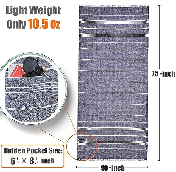 - Aysesa-Sandproof Turkish Cotton Beach Towel Oversized w/Hidden-Pocket 75" Sand Free Blanket Extra Large Packable Travel Bath Towel Gift Men Women Made-in-Turkey offers reliable performance and quality