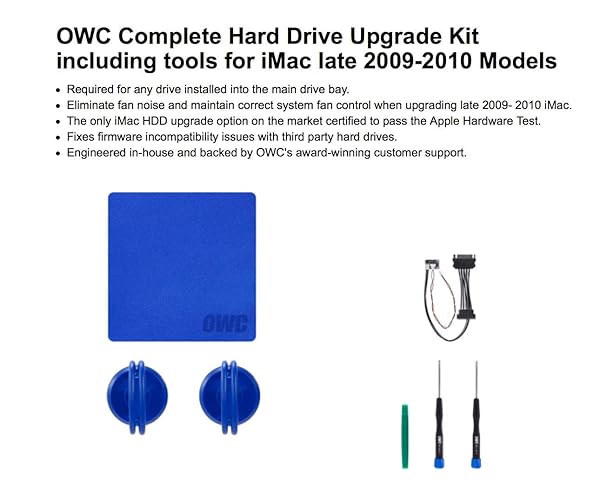 - OWC in-Line Digital Thermal Sensor HDD Upgrade Cable and Install Tools for iMac 2009-2010, (OWCDIYIMACHDD09) offers reliable performance and quality- Includes all cables and tools necessary for drive installation into main drive bay of Apple iMac 2009-2010 Models-Hard drive sold separately- Upgrade your iMac with any SATA drive, No Software hacks, AHT Diagnostic compatible- Compatibility: iMac 2009-2010 Models