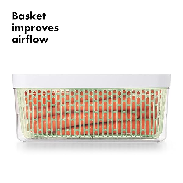 - OXO Good Grips GreenSaver Produce Keeper - Large,White offers reliable performance and quality- GreenSaver Produce Keeper prevents fruits and vegetables from spoiling too quickly- Natural Carbon Filter absorbs and traps ethylene, a gas released by produce that speeds up the ripening process- Elevated basket prevents moisture buildup and promotes proper airflow- Removable basket also works as a colander