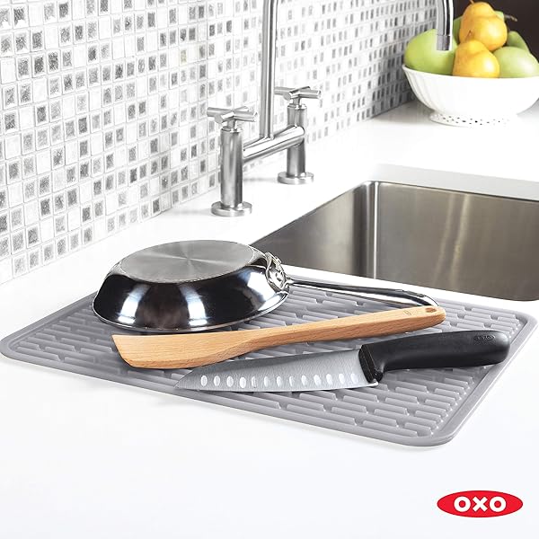 OXO Good Grips Large Silicone Drying Mat - Durable, Non-Slip, Gray Kitchen Essential